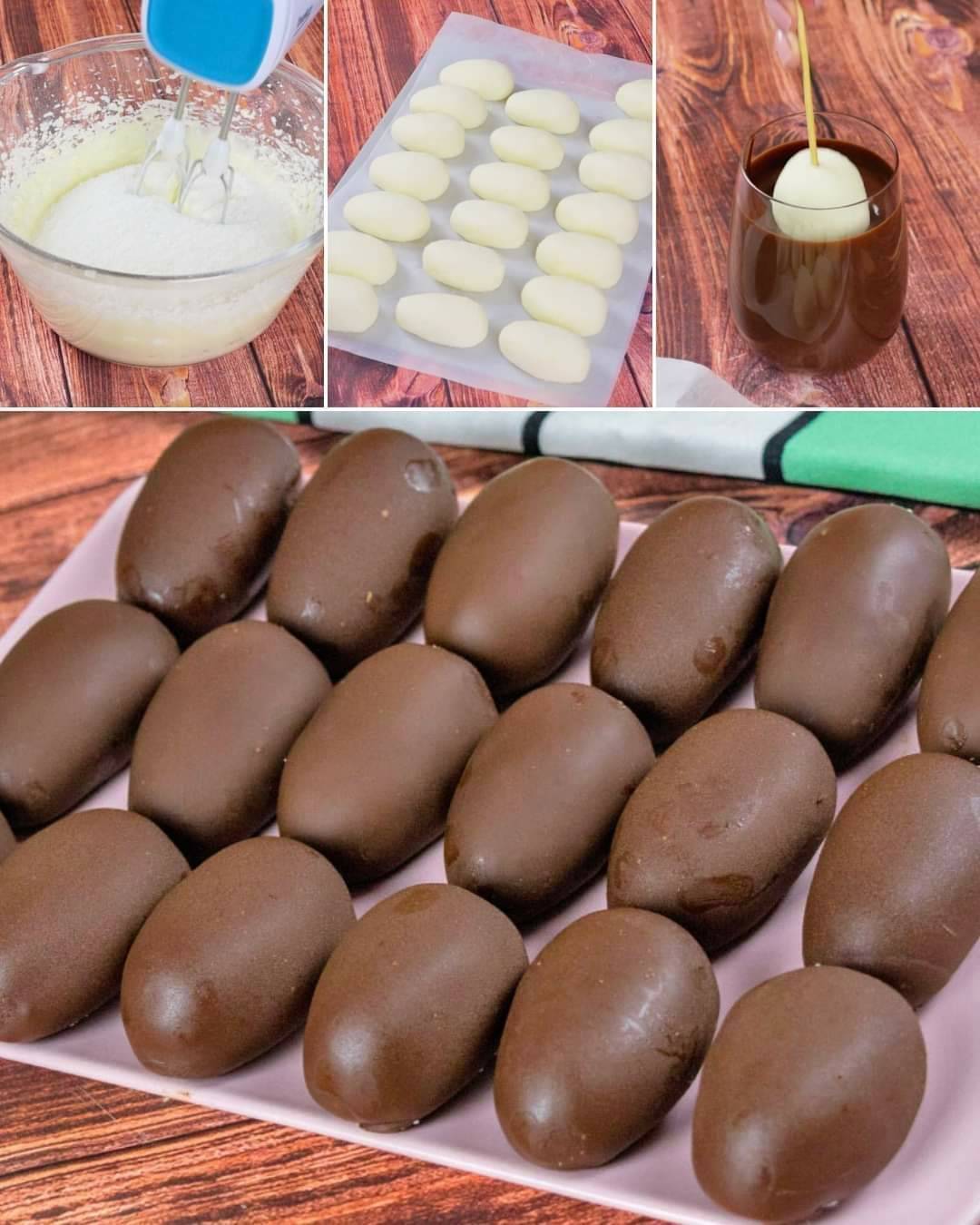 Het is de perfecte paastraktatie! INGREDIËNTEN 235 g zachte roomkaas 30 g (2 eetlepels) zachte boter 500 g poedersuiker 100 g geraspte kokosnoot 200 g gesmolten chocoladestukjes METHODE lees meer op de volgende pagina