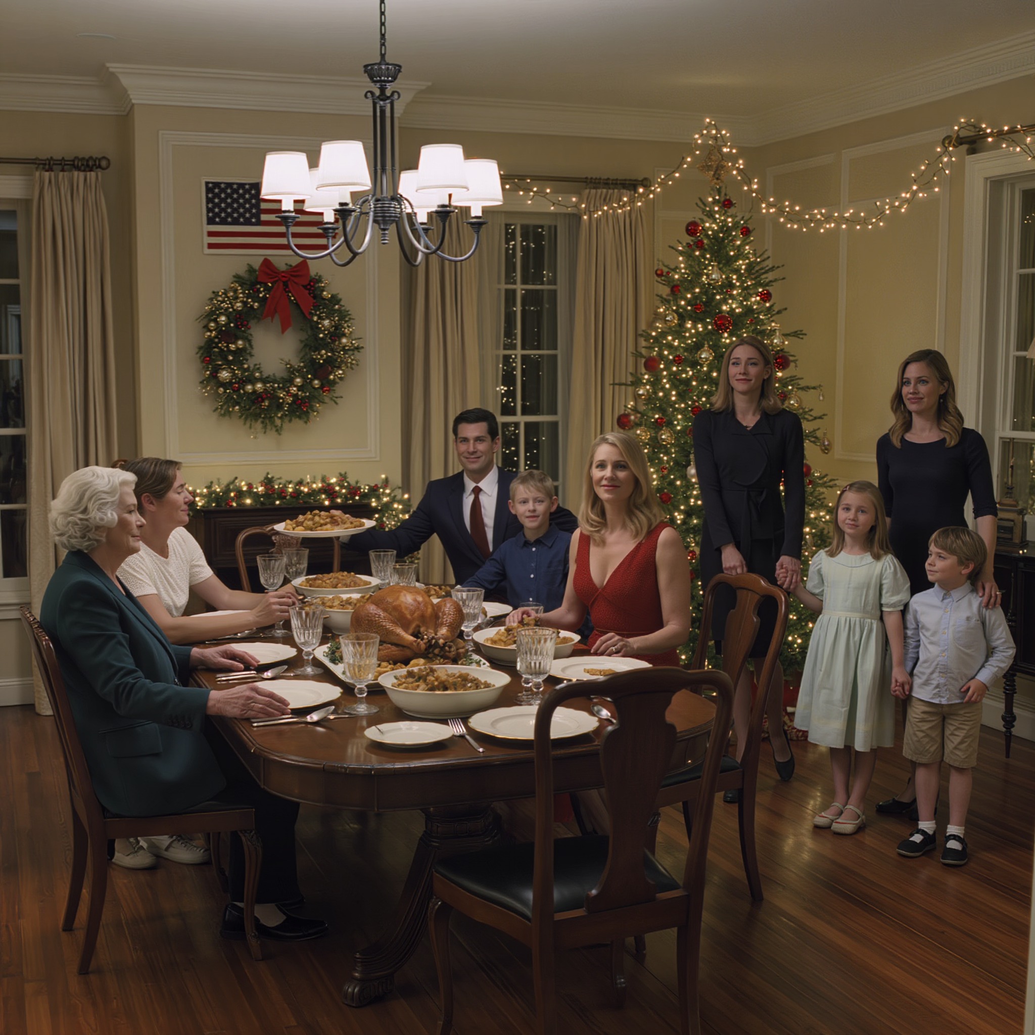 Tijdens het Thanksgivingdiner zei mijn moeder luchtig: « Laat mijn zoon en kleinkinderen eerst eten. Wij serveren die van jullie daarna. » Voor mijn kinderen stond een leeg bord. Mijn zus voegde eraan toe: « Gelukkig is er nog wat eten voor hen over. » Ik zei niets, nam mijn kinderen mee en vertrok. Minuten later… vulde hun huis zich met een schreeuw die ze nog nooit eerder hadden gehoord.