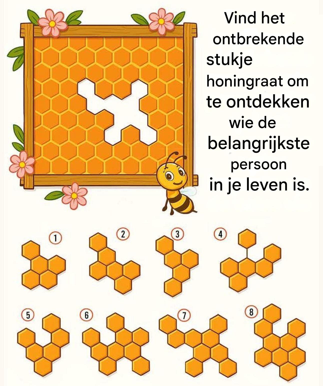 Vind het ontbrekende stukje van het honingraatpatroon en ontdek wie er naast je loopt.