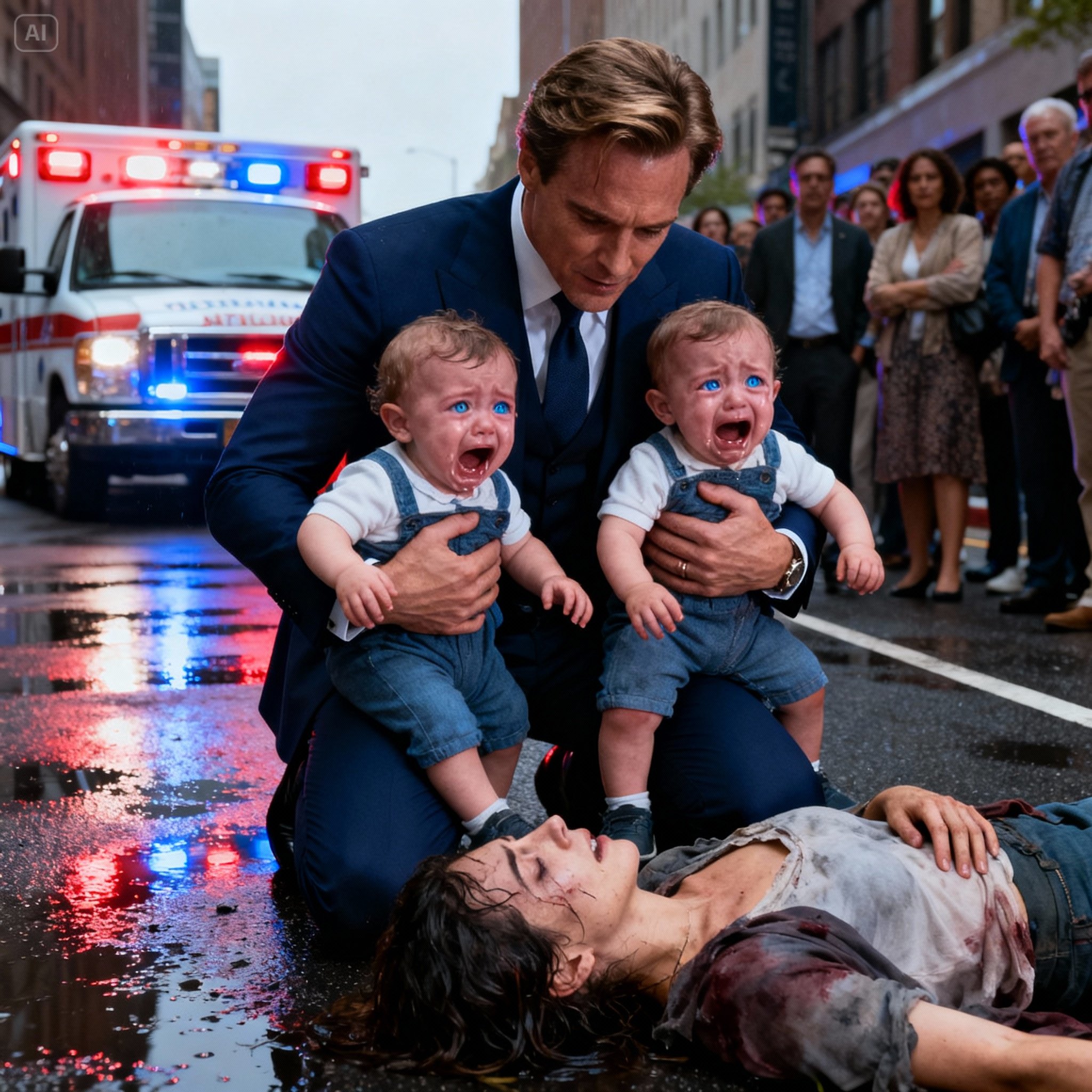 Een dakloze vrouw viel op de grond langs de kant van de weg, terwijl haar tweejarige tweeling hulpeloos huilde. Toen er toevallig een miljardair voorbijliep, was hij geschokt toen hij ontdekte dat de kinderen sprekend op hem leken.