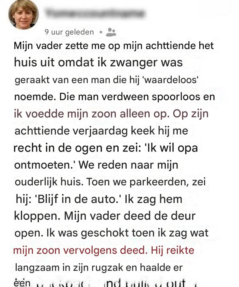 Mijn vader heeft me op mijn achttiende het huis uitgezet omdat ik zwanger was geraakt van een man die hij “waardeloos” noemde. Die man verdween spoorloos, en ik voedde mijn zoon in mijn eentje op. Op zijn achttiende verjaardag keek hij me recht in de ogen en zei: “Ik wil opa ontmoeten.” We reden naar … Lire plus