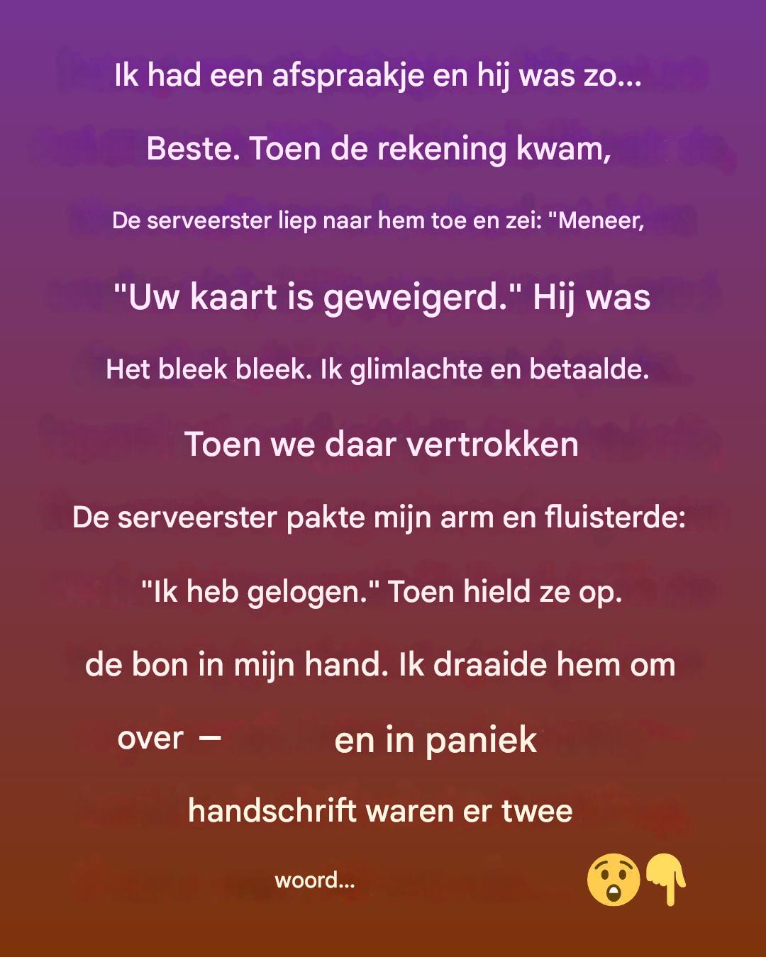 Toen de serveerster zei: « Meneer, uw kaart is geweigerd », had ik niet verwacht wat er daarna zou gebeuren.