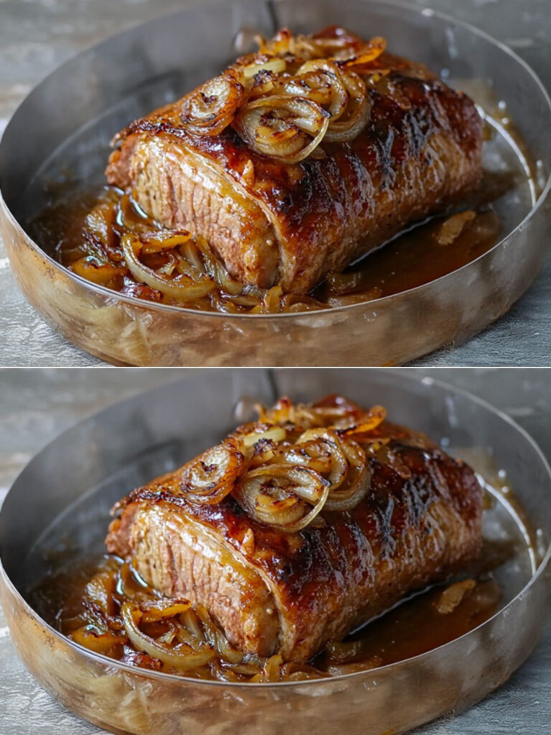 Gebraden varkensvlees is een van die tijdloze gerechten die direct herinneringen oproepen aan zondagse familiediners, lange, gezellige bijeenkomsten en de heerlijke aroma’s van huisgemaakte gerechten. In deze vernieuwde versie krijgt het een subtiel zoet-hartige toets dankzij honing en balsamicoazijn, die het vlees delicaat bedekken en de uien transformeren tot een heerlijk malse, gekarameliseerde topping.