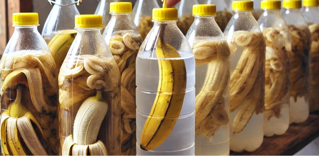 Bananenschillen bevatten kalium en fosfor, essentiële voedingsstoffen voor plantengroei. Door de azijninfusie worden deze voedingsstoffen beter beschikbaar voor de planten.