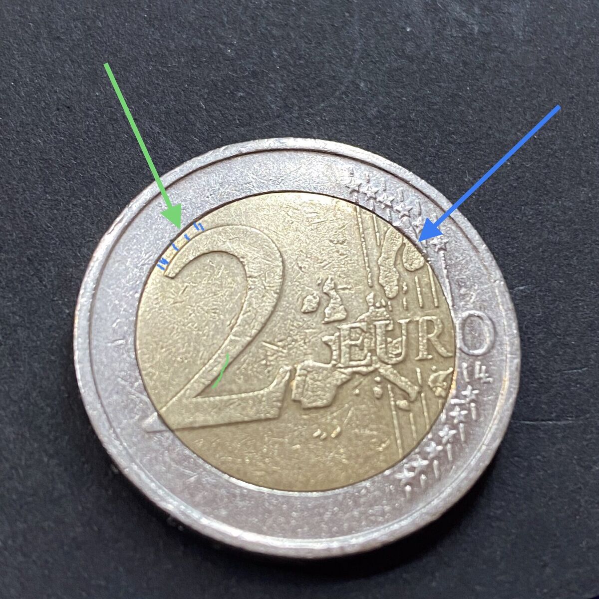 Een Griekse 2-euro munt werd te koop aangeboden voor 80.000 euro, ofwel 40.000 keer de nominale waarde. De reden? Er staat een kleine « S » in het midden van de onderste ster.