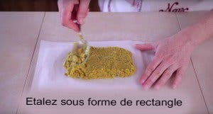 9. Spreid het uit tot een rechthoek van ongeveer 15 centimeter breed en 10 centimeter lang. De hoogte mag niet groter zijn dan 1 centimeter.