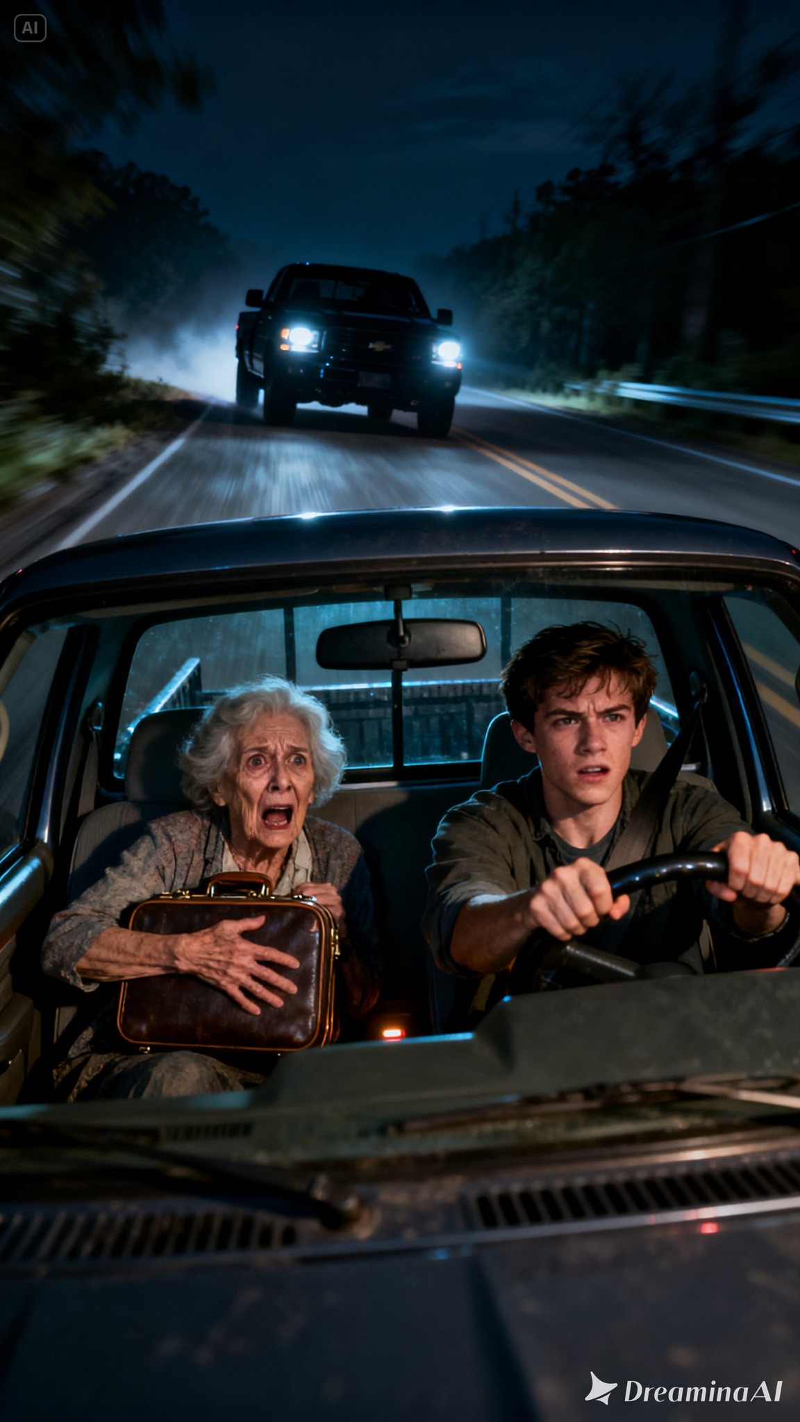 Twintig minuten later zaten we in zijn gammele Ford-truck en reden we met hoge snelheid weg van het huis dat mijn overleden echtgenoot met zijn eigen handen had gebouwd. Mijn telefoon begon te rinkelen in mijn tas.