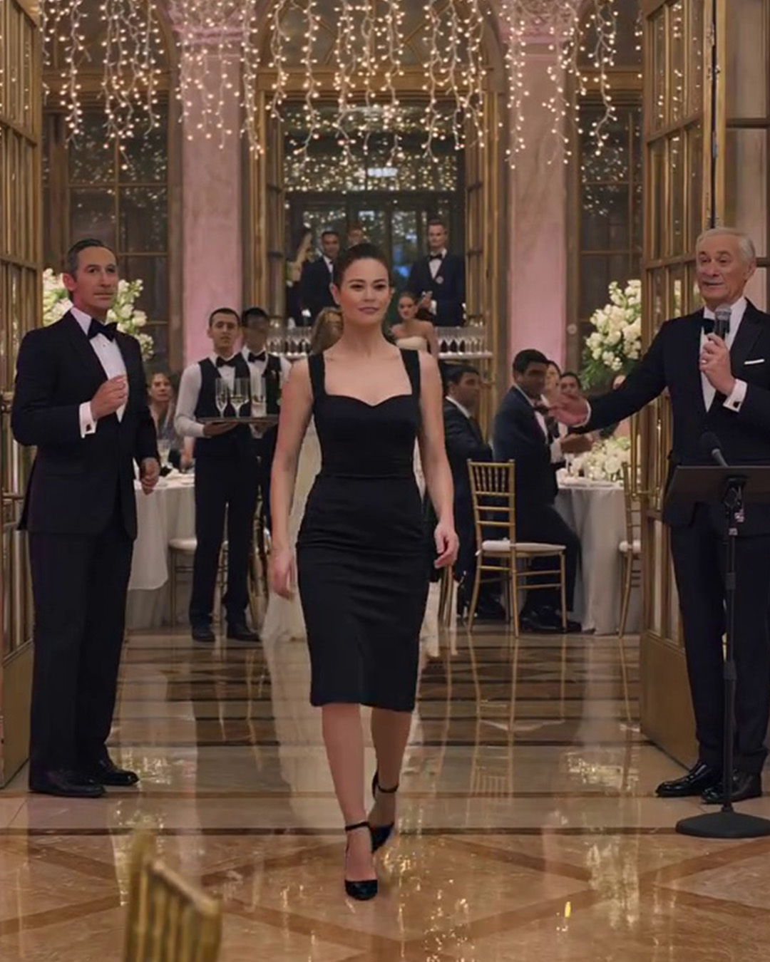 Op de bruiloft van mijn zus liet mijn vader me bij het personeel zitten en grapte: « Je bent tenminste gekleed om drankjes te serveren. » De gasten lachten. Ik pakte een fles champagne, schonk de drankjes in en vertrok stilletjes. Een uur later zette de zaalmanager de muziek uit, wees naar mijn vader en kondigde aan: « De eigenaar wil dat je vertrekt. »