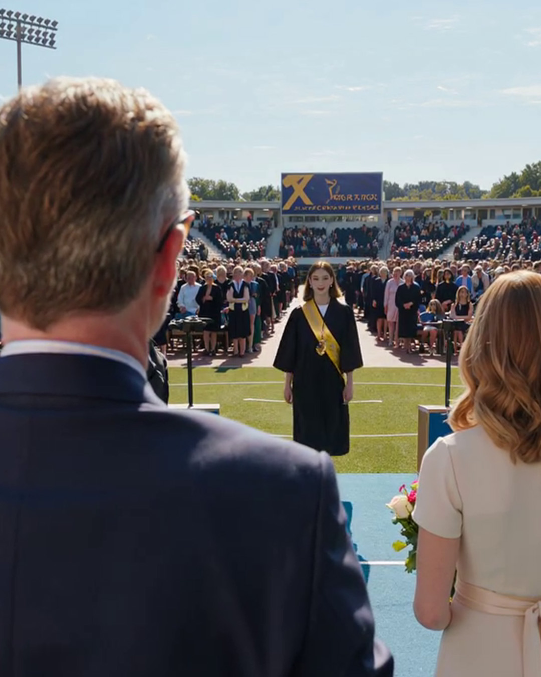 Ze kwamen naar de diploma-uitreiking van mijn tweelingzus met bloemen en een brede glimlach op hun gezicht – toen begon de decaan te vertellen over een beste leerling die ze niet herkenden.