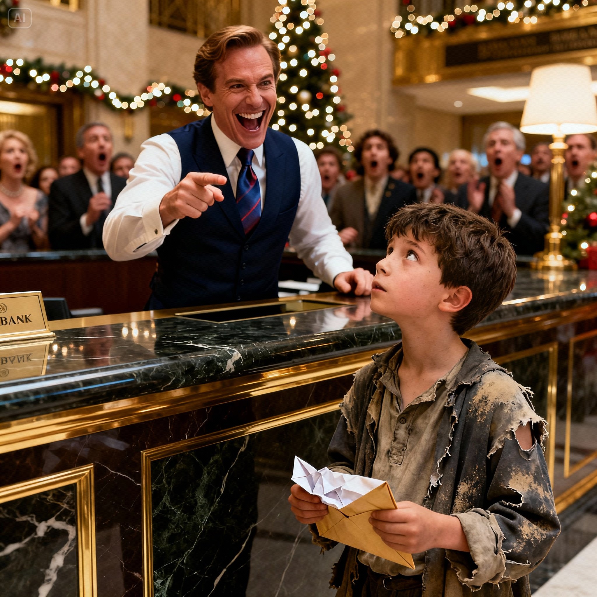 Een jongen met versleten schoenen ging naar de bank om zijn rekening te controleren — de manager lachte tot hij het saldo zag.